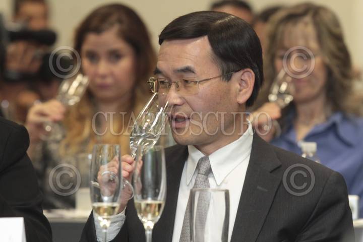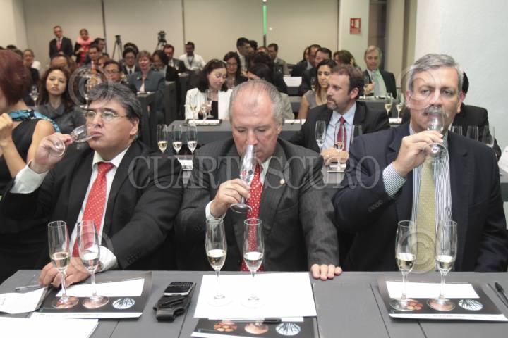 MÉXICO, D.F., 24JULIO2013.- Ramón González Figueroa, titular del Consejo Regulador del Tequila, Eduardo Orendáin, presidente de la Industria Tequilera, y Francisco González Díaz, director General de ProMéxico, realizaron la presentaciónde de la serie de televisión Tequila Hasta los Huesos, producido por la Universidad de Guadalajara. Al finalizar esta presentación realizaron la cata magistral "Los Aromas del Tequila" a cargo de Ana María Romero. A este evento fue invitado el cuerpo diplomático de diversas embajadas en el País. FOTO: JUAN PABLO ZAMORA /CUARTOSCURO.COM