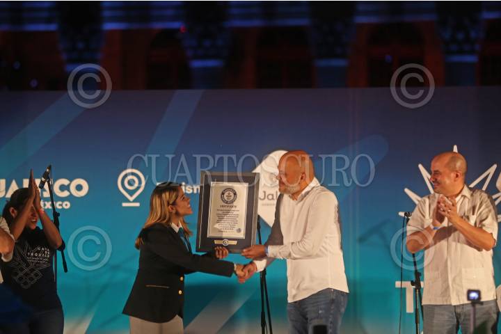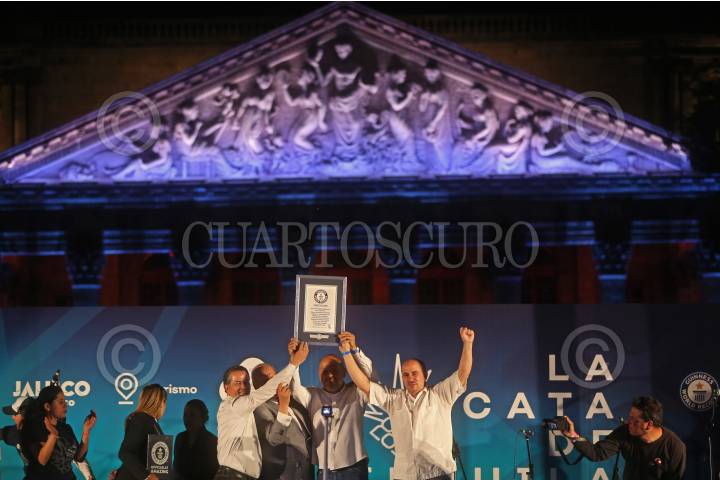 GUADALAJARA, JALISCO, 24MARZO 2019.- Esta noche Jalisco logro la certificación Record Guinness por la cata de tequila mas grande del mundo con un numero de mil 486 personas, dicho evento se llevo a cabo en la Plaza de la Liberación. FOTO: FERNANDO CARRANZA GARCIA / CUARTOSCURO.COM