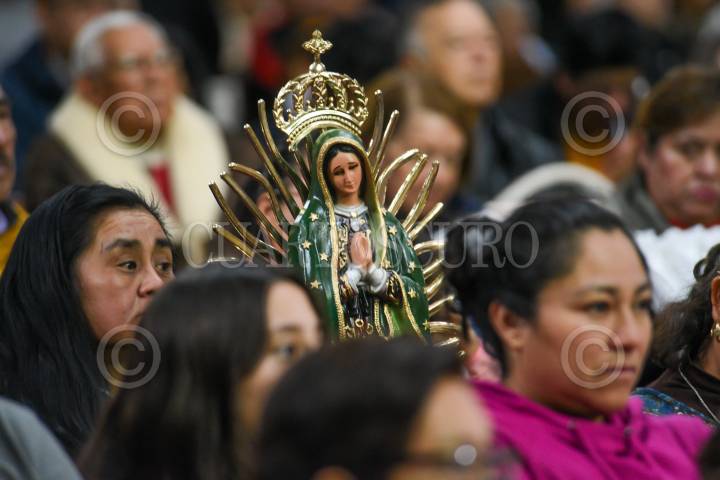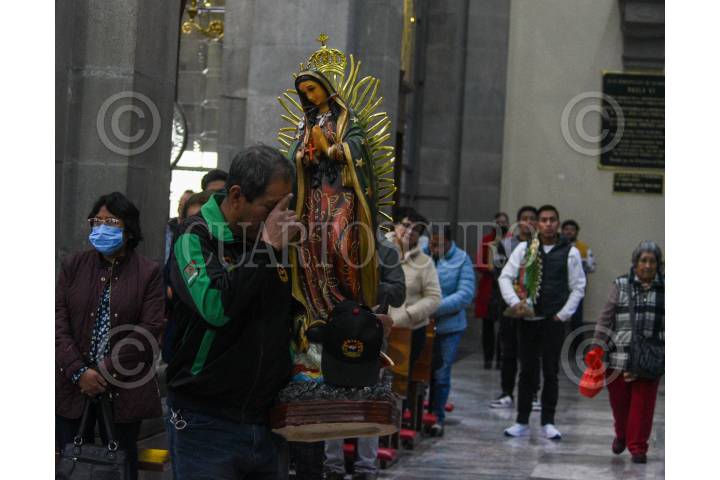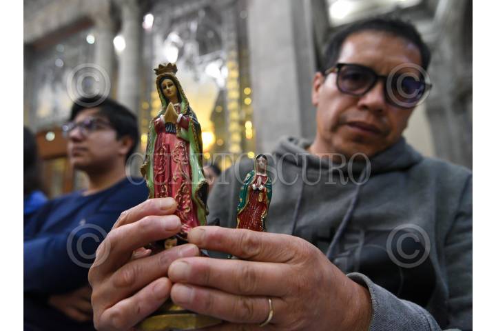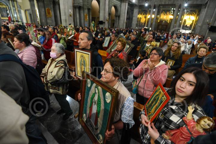 TOLUCA, ESTADO DE MÉXICO, 12DICIEMBRE2023.- Fieles católicos acudieron a la Catedral de Toluca con imágenes de la Virgen de Guadalupe en el marco de los 492 años de la aparición de la Virgen morena en el Tepeyac, escucharon misa y posteriormente sus imágenes fueron bendecidas. FOTO: CRISANTA ESPINOSA AGUILAR /CUARTOSCURO.COM