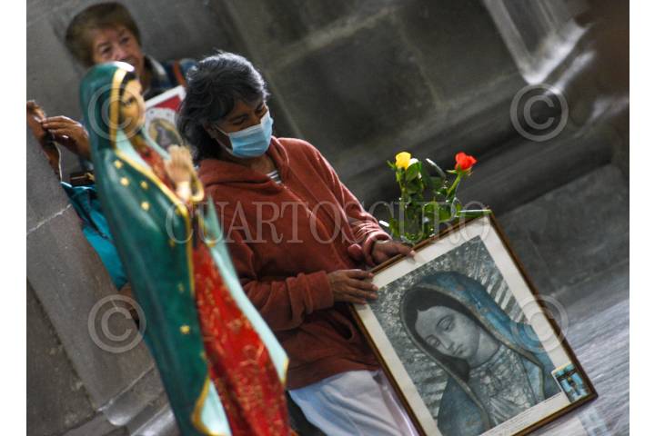 TOLUCA, ESTADO DE MÉXICO, 12DICIEMBRE.- Fieles católicos acudieron a la Catedral de Toluca con imágenes de la Virgen de Guadalupe en el marco de los 492 años de la aparición de la Virgen morena en el Tepeyac, escucharon misa y posteriormente sus imágenes fueron bendecidas. FOTO: CRISANTA ESPINOSA AGUILAR /CUARTOSCURO.COM