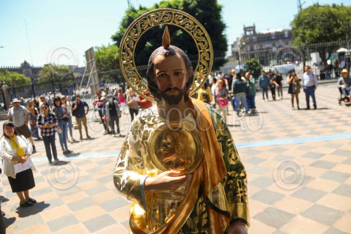 CIUDAD DE MÉXICO. 28MARZO2025.- Víctor González Torres, sueños de las Farmacias Similares, entrego un San Judas Tadeo a la Catedral Metropolitana de la ciudad de México. Este medio día se realizó la entrega de este Santo, protector de la causas difíciles o perdidas. FOTO: VICTORIA VALTIERRA/CUARTOSCURO.COM