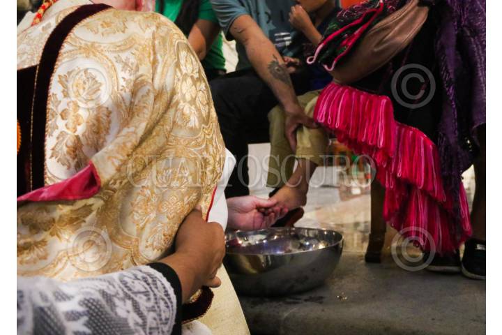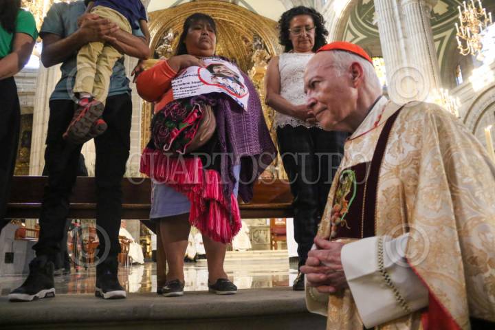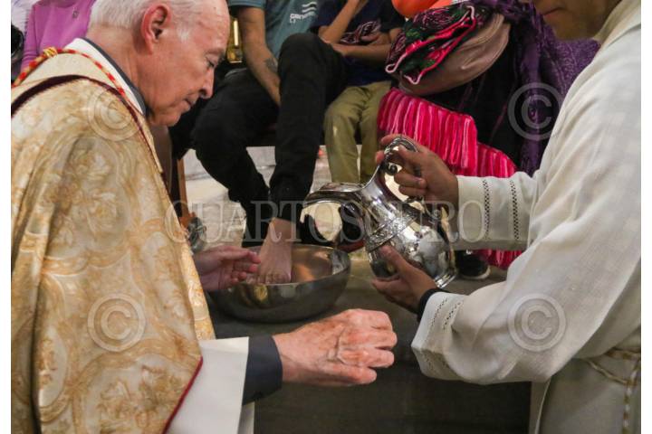 CIUDAD DE MÉXICO. 17ABRIL2025.- El arzobispo de México, Carlos Aguiar Retes; durante la misa de este jueves Santo en la catedral metropolitana; lavo los pies de familiares y madres buscadoras. FOTO: VICTORIA VALTIERRA/CUARTOSCURO.COM