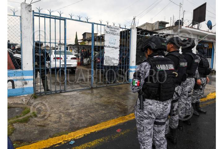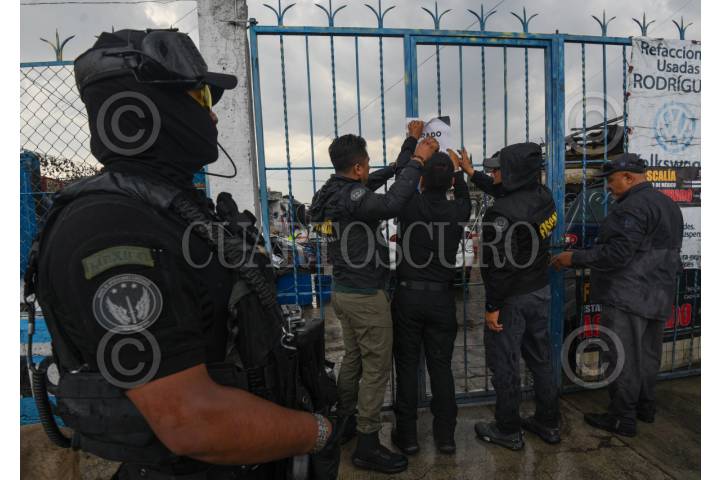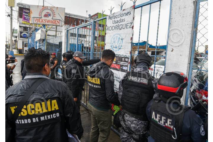 TOLUCA, ESTADO DE MÉXICO, 08MAYO2025.- Elementos de la FGJEM, Secretaría de Seguridad Estatal y Fiscalía CDMX llevaron a cabo la Operación Fortaleza en 17 municipios del Estado de México, así como en dos alcaldías de la CDMX, como una estrategia para combatir el robo de vehículos. De manera simultánea, se llevaron a cabo cateos en sitios relacionados con el desvalijamiento de unidades, venta y almacenamiento de autopartes y vehículos robados. FOTO: CRISANTA ESPINOSA AGUILAR /CUARTOSCURO.COM