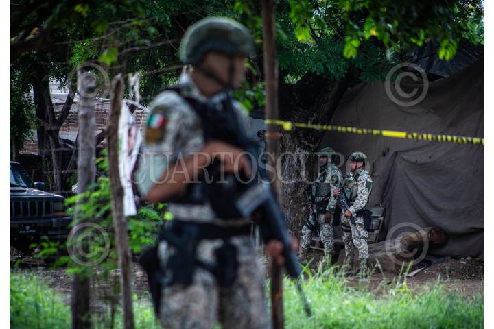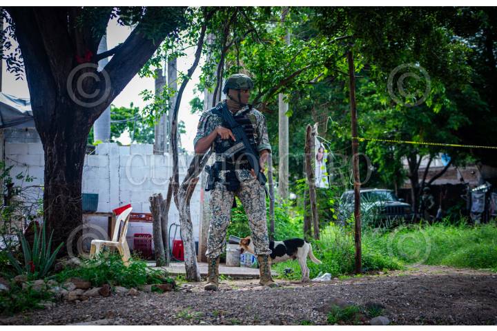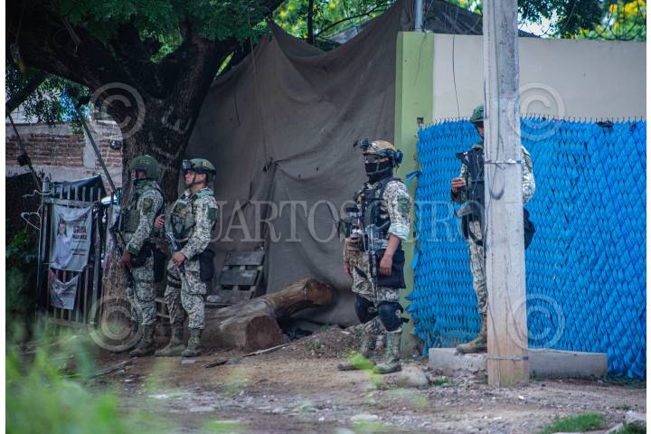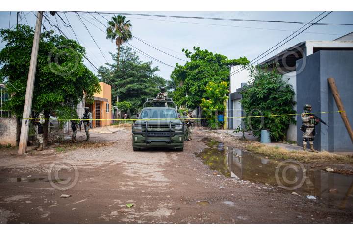 CULIACÁN, SINALOA , 07SEPTIEMBRE2024. Elementos del Ejército Mexicano y de la Guardia Nacional aseguraron y mantienen en resguardo un inmueble en la colonia Miguel de la Madrid en Culiacán. El operativo se lleva a cabo en la calle Mina de Tayoltita, entre Huichol y Lacandones con la participación de cuatro unidades oficiales. Hasta el momento, se desconoce si hay personas detenidas o si se han encontrado objetos ilícitos en el inmueble. Se presume que los elementos castrenses esperan una orden de cateo para que la Fiscalía General de la República pueda ingresar y realizar la inspección correspondiente. FOTO: JOSÉ BETANZOS/CUARTOSCURO.COM