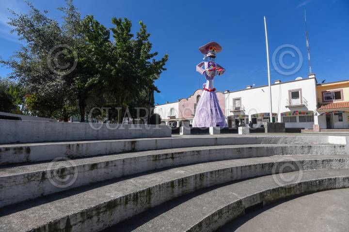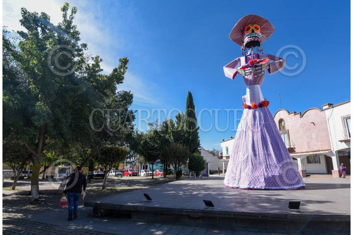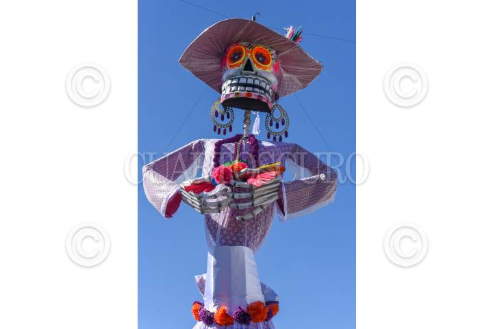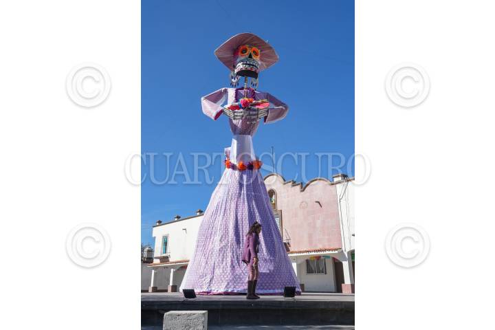 Una catrina monumental que mide 12 metros de altura fue instalada en San Antonio la Isla como una forma de rescatar las tradiciones previó al festejo del Día de Muertos.