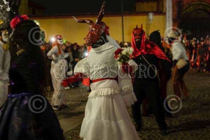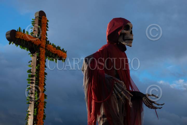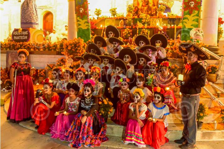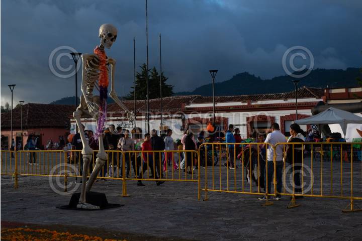 SAN CRISTÓBAL DE LAS CASAS, CHIAPAS, 02NOVIEMBRE2024.- El gobierno municipal organizó diferentes actividades en el centro de la ciudad para celebrar el Día de Muertos, dentro de las cuales destacan la colocación de ofrendas decoradas con calaveras gigantes y un desfiles de catrines y catrinas con la participación de diferentes escuelas de danza en la región. FOTO: ISABEL MATEOS /CUARTOSCURO.COM