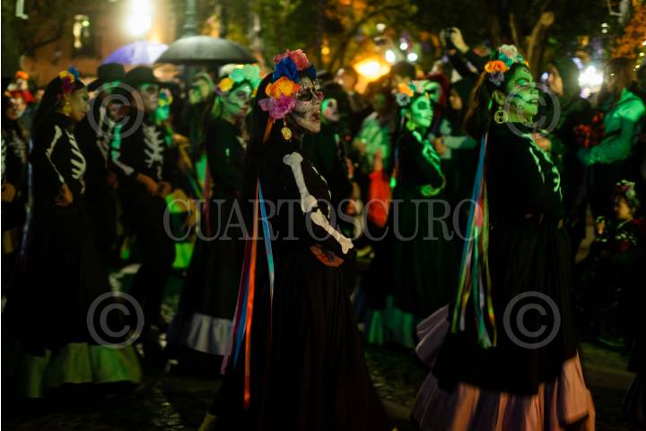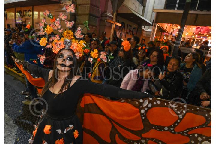 TOLUCA, ESTADO DE MÉXICO, 01NOVIEMBRE2024.- Este Día de Muertos Toluca se llenó de color con el desfile de alegóricos y cientos de catrinas y catrines que participaron en Catrineando 2024, que se ha convertido en una tradición en la capital mexiquense y dio inició en el 2011. FOTO: CRISANTA ESPINOSA AGUILAR /CUARTOSCURO.COM