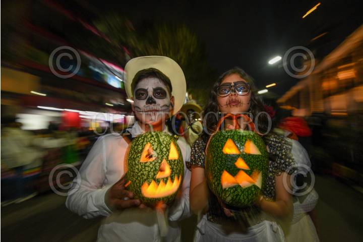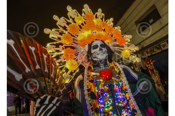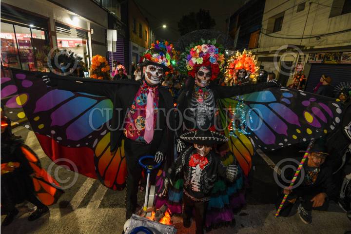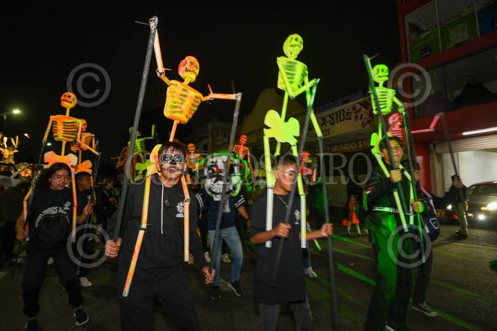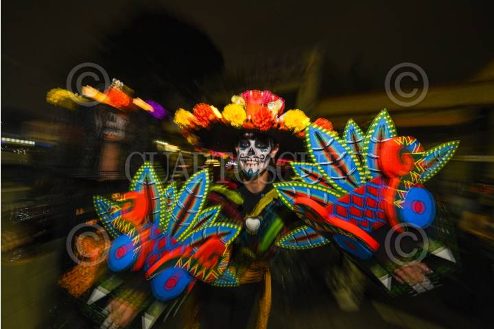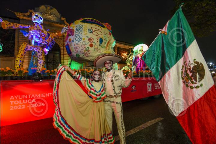 TOLUCA, ESTADO DE MÉXICO, 01NOVIEMBRE2024.- Este Día de Muertos Toluca se llenó. de color con el desfile de carros alegóricos y cientos de catrinas y catrines que participaron en Catrineando 2024, que se ha convertido en una tradición en la capital mexiquense que tiene sus inicios en el 2011. FOTO: CRISANTA ESPINOSA AGUILAR /CUARTOSCURO.COM