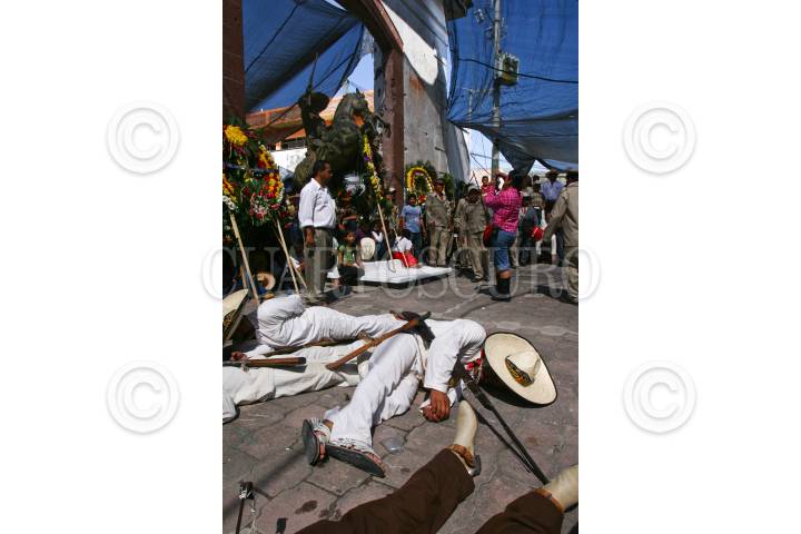 CHINAMECA, MORELOS, 10ABRIL2010.- Actores aficionados representaron algunos de los epidsodios de la vida de Emiliano Zapata, hasta su muerte en la Hacienda de Chinameca, cuando fue traicionado y emboscado por Jesús Guajardo. FOTO: ISAAC ESQUIVEL/CUARTOSCURO.COM