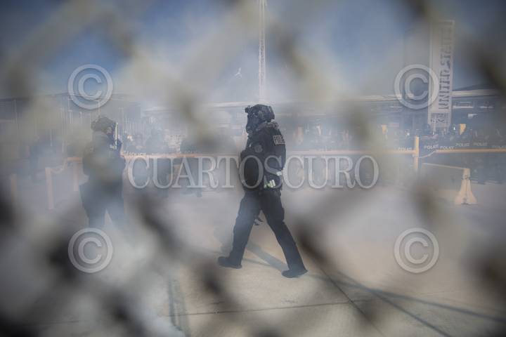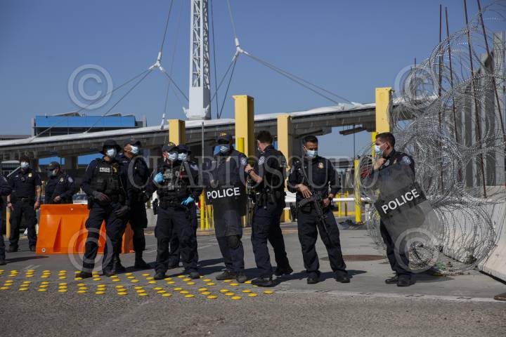 Agentes del CBP ( Oficina de Aduanas y Protección Fronteriza ) instalaron un fuerte operativo en la entrada del cruce fronterizo San Ysidro para evitar que los migrantes ingresen al país estadounidense.