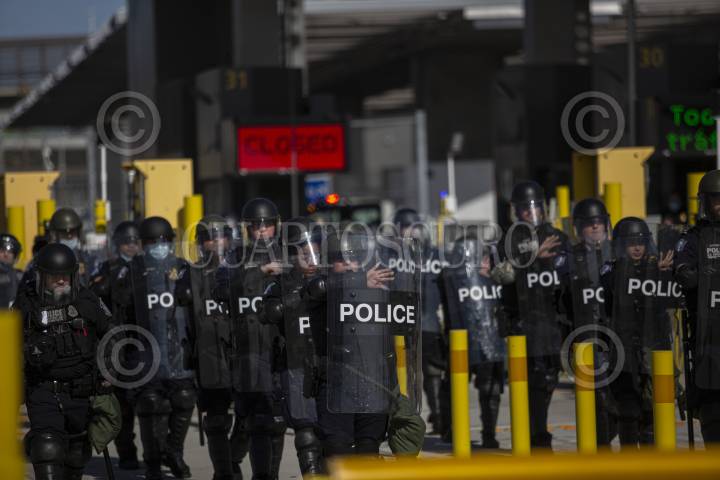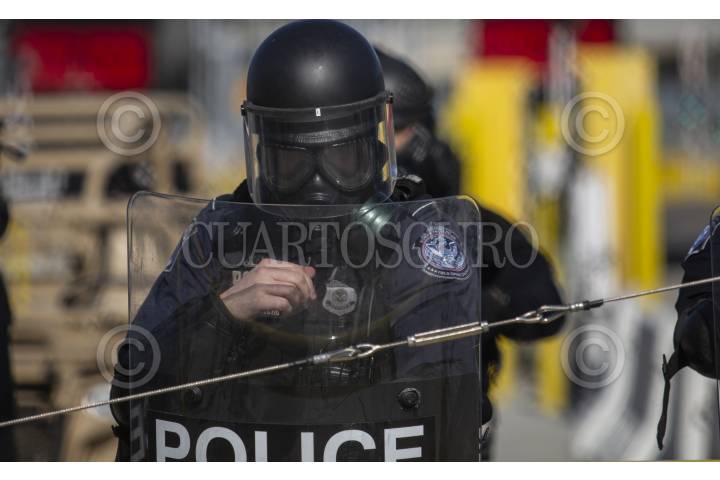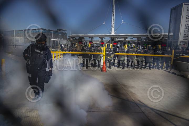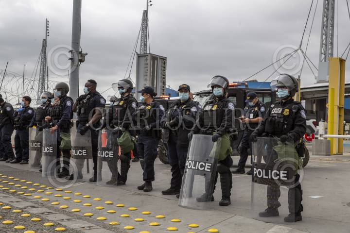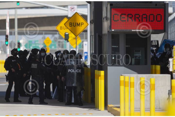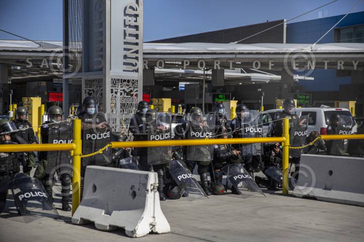Agentes del CBP (Oficina de Aduanas y Protección Fronteriza ) instalaron un operativo en la entrada del cruce fronterizo de San Ysidro debido a la manifestación de migrantes.