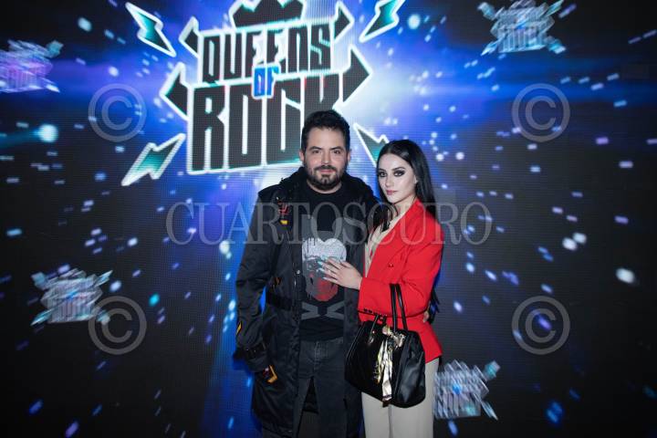 Lucero Mijares y Juan Torres a su paso por la alfombra roja del espectáculo “Queens of Rock”, en el centro Cultural Teatro 2.