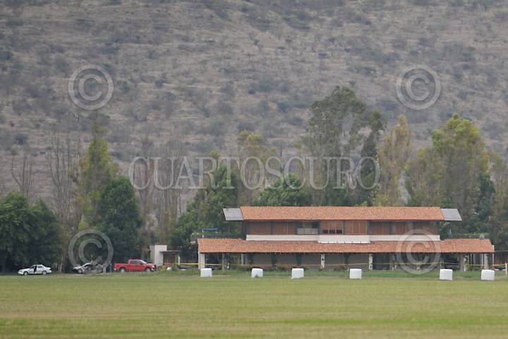 PEDRO ESCOBEDO, QUERETARO, 16MAYO2010.- Elementos de la policía Estatal de Querétaro, resguardan las entradas al rancho " La Cabaña " de donde desapareció Diego Fernandez, "Jefe Diego". Al interior laboran elementos de la Procuraduría del estado realizando investigaciones pertinentes. FOTO: LUIS CARBAYO/CUARTOSCURO.COM