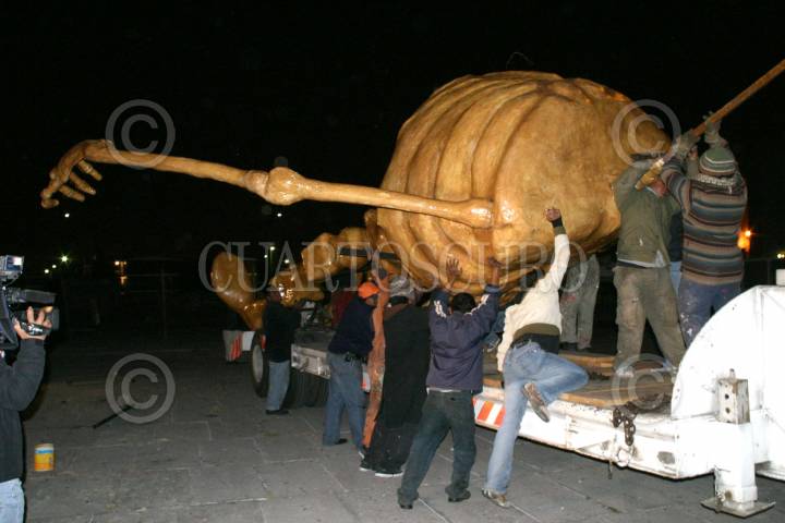 MÉXICO D.F. 31OCTUBRE2007.- Trasladan durante la madrugada de hoy a las calaveras gigantes realizadas en la Fabrica de Artes y Oficios (FARO) de Oriente hacia la plancha del zocalo capitalino para la cebracion del dia de muertos. FOTO: SAUL LOPEZ/CUARTOSCURO.COM