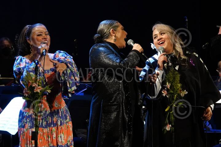 Las cantantes Leiden, Cecilia Toussaint y Vivir Quintana, acompañadas de la Orquesta Filarmónica de la Ciudad de México, ofrecieron un concierto en conmemoración al Día Internacional de la Mujer realizado en el Teatro de la Ciudad Esperanza Iris