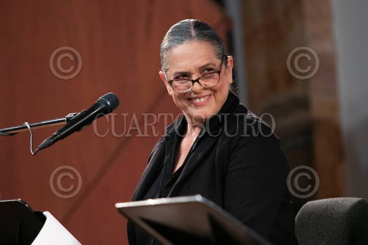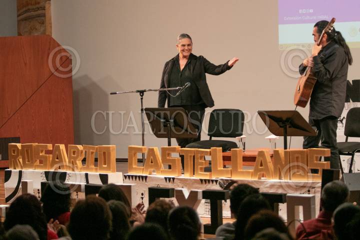 CIUDAD DE MÉXICO, 25AGOSTO2024.- La actriz y cantante Cecilia Toussaint leyó texto de la escritora Rosario Castellanos (1925-1974), en el marco del programa de lectura Leo... Luego Existo que se realizó en la Sala Manuel M. Ponce del Palacio de Bellas Artes. La presentación que tuvo por nombre "Matamos lo que amamos" interpretó canciones de José G. Elorza y fue acompañada en la guitarra de Jorge García Montemayor. FOTO: MOISÉS PABLO/CUARTOSCURO.COM