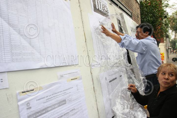 MÉXICO, D.F 20MAYO2008.- Simpatizantes de Alejandro Encinas, instalaron a las afueras de la cede de garantias del PRD, unas mamparas que muestran documentos de irregularidades de las pasadas elecciones internas, dicha exposición, lleva como nombre "Expo-Fraude". FOTO: SAÚL LÓPEZ/CUARTOSCURO.COM