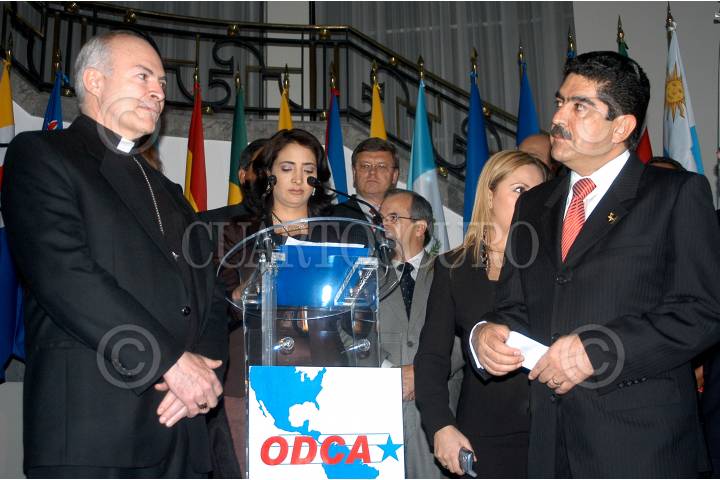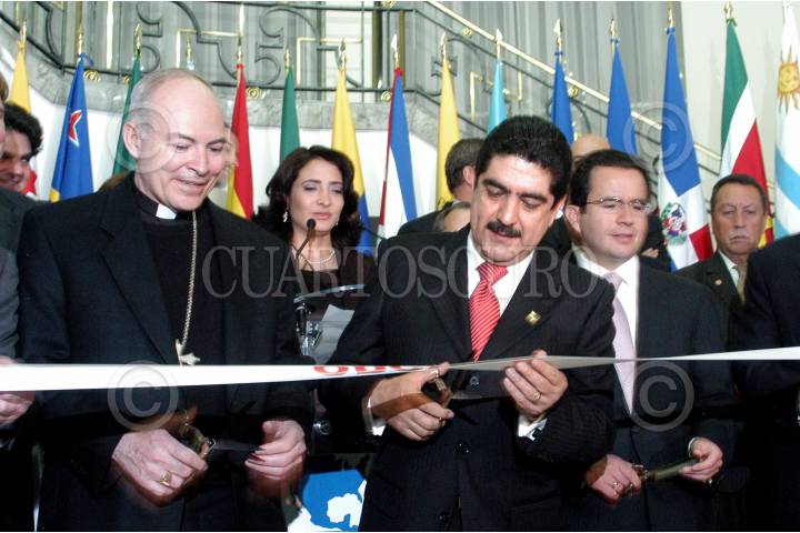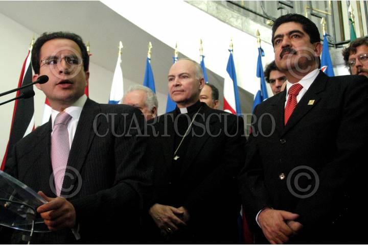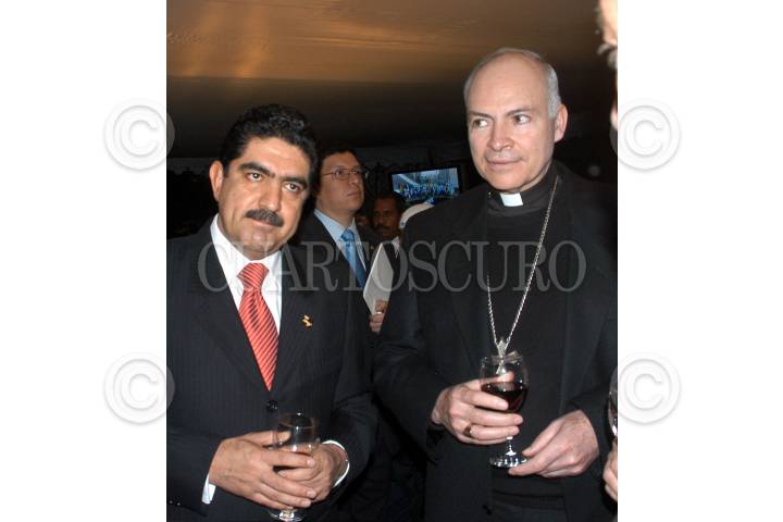 MÉXICO D.F. 26NERO2007.- Manuel Espino presidente nacional del PAN acompañado de Carlos Aguilar Retes Presidente de la Conferencia del Episcopado, durante la inauguración de la nueva cede de la Organización Democrata Cristiana de América. FOTO: GUILLERMO PEREA/CUARTOSCURO.COM