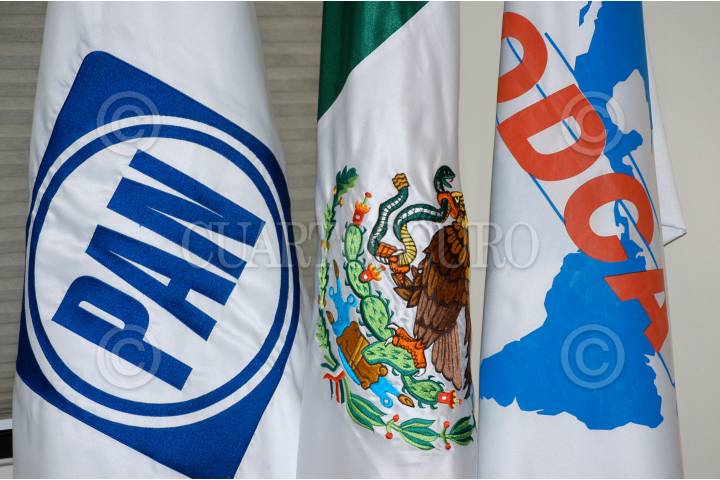 MÉXICO D.F. 26NERO2007.- La bandera nacional en medio de la bandera del partido Acción Nacional y de la Organización Democrata Cristiana de América en la ofician del director de este organismo. FOTO: GUILLERMO PEREA/CUARTOSCURO.COM