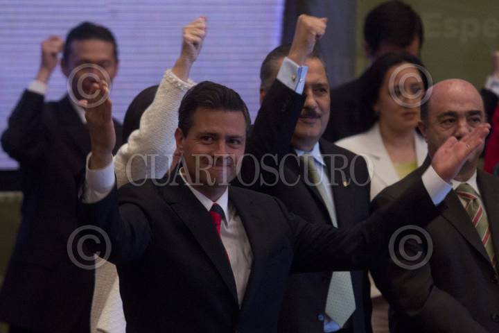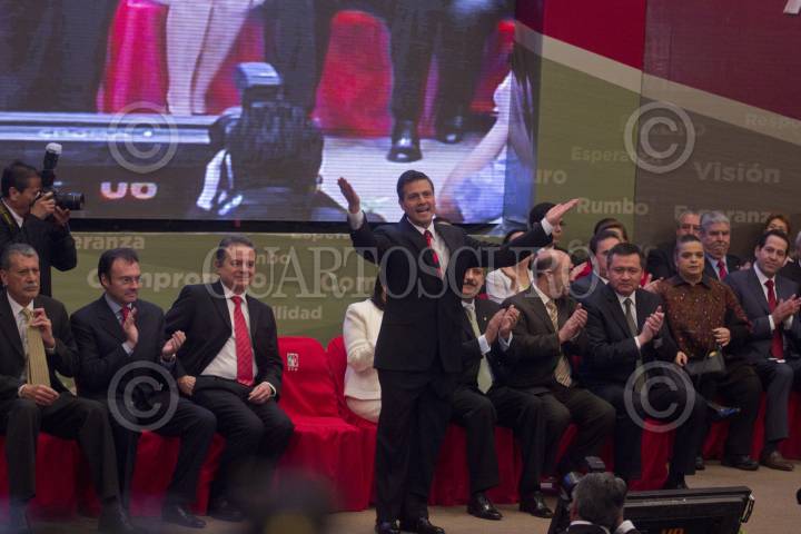 MÉXICO, D.F., 04MARZO2012.- Enrique Peña Nieto, Precandidato a la presidencia de la república por el PRI, asistió al 83 aniversario del Partido Revolucionario Institucional en la Cede Nacional del Tricolor en Avenida Insurgentes. FOTO: ENRIQUE ORDÓÑEZ /CUARTOSCURO.COM