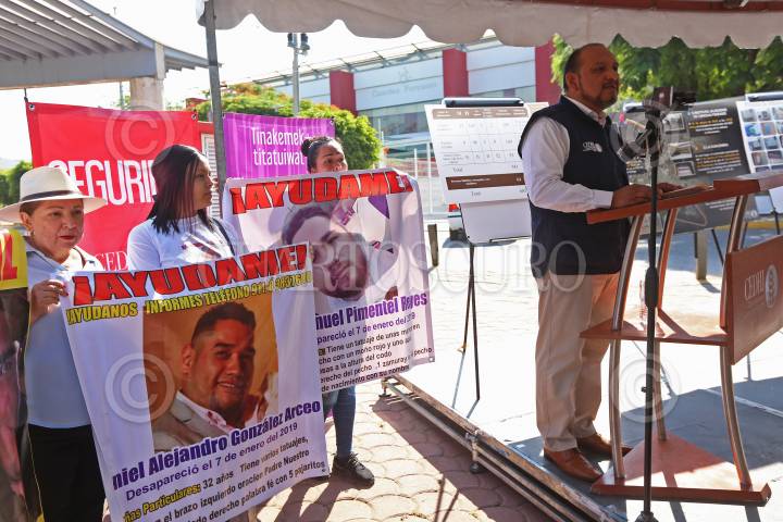 TLAQUEPAQUE, JALISCO, 21MAYO2019.- Alfonso Hernández Barrón Presidente de la Comisión Estatal de los Derechos Humanos de Jalisco (CEDHJ), encabezo una conferencia de prensa en la explanada exterior del Servicio Medico Forense de esta localidad, esto para dar a conocer estadísticas y nueva información en torno a la problemática de personas desaparecidas así como de los hechos ocurridos en Septiembre del año pasado, en donde se ventilo que el Instituto Jalisciense de Ciencias Forenses (IJCF) almacenaba cadáveres en cajas frigoríficas de tráileres que circulaban por la metrópoli. FOTO: FERNANDO CARRANZA GARCIA / CUARTOSCURO.COM