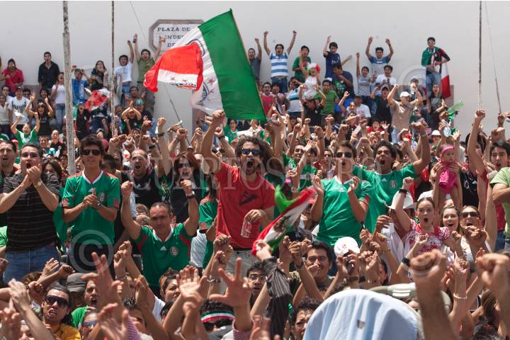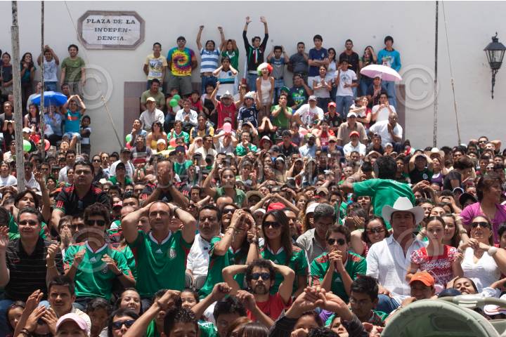 QUERÉTARO, QUERÉTARO, 27JUNIO2010.- Cientos de aficionados al futbol se reunieron frente a la mega pantalla instalada en Plaza de Armas para disfrutar el partido del mundial Sudafrica 2010 que celebró entre la Selección Mexicana y la Selección Argentina con un marcador final de 3-0 en favor de los sudamericanos. FOTO: DEMIAN CHÁVEZ/CUARTOSCURO.COM