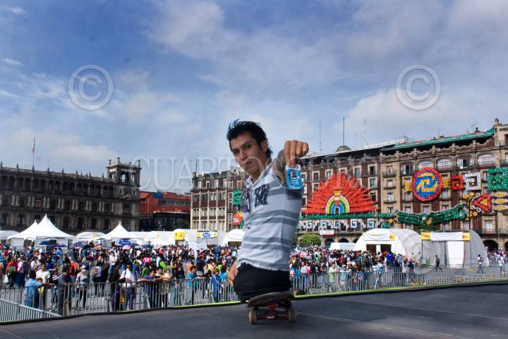 MÉXICO, D.F., 13AGOSTO2010.- El 12 de Agosto se celebró oficialmente el Día de la Juventud, celebración que se llevo acabo en la plancha del Zocalo Capitalino, donde se tuvieron alrededor de 80 actividades juveniles, entre tatuaje, concurso de patineta, body paint, brigadas de salud, lucha libre, bandas de rock, entre otras multiples actividades. Dicho evento fue inaugurado por el Secretario de Educación Publica del DF Mario Delgado Carrillo y por el Director del INJUVE DF, Javier Hidalgo Ponce. FOTO: HERMES QUETZALCOATL/ARCHIVO/CUARTOSCURO.COM
