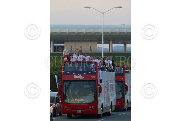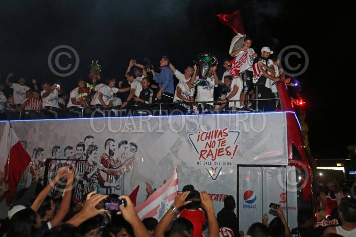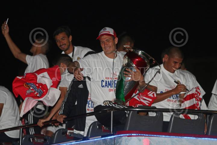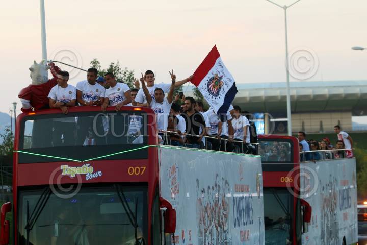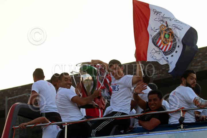 GUADALAJARA, JALISCO.- 05NOVIEMBRE2015.-El equipo de las Chivas de Guadalajara celebro esta tarde el campeonato de la Copa MX, con una caravana que partió del estadio Omnilife hacia la minerva, por algunas de las vías mas importantes de la ciudad, durante el recorrido que duro aproximadamente un par de horas, los jugadores fueron interactuando con la afición FOTO: FERNANDO CARRANZA GARCIA/ CUARTOSCURO.COM