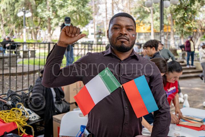 TIJUANA BAJA CALIFORNIA 16MAYO2025.-La comunidad haitiana que vive en Tijuana se reunió para celebrar la primera edición del Día de la Bandera de Haití en el Parque Teniente Guerrero. Yessi de la comunidad haitiana comentó que es el primer evento que se realiza para celebrar el día de su bandera en la ciudad fronteriza. “El 18 de mayo es la fecha de la bandera de Haití, tiene 222 años que se ha creado, es muy importante para nosotros”, expresó. Además agregó que los colores que integran a la bandera de Haití simbolizan la independencia y la fuerza de su comunidad. Por su parte Rosamide Cadeus Intérprete y Traductora del Centro de Recursos para Trabajadores Migrantes, compartió que su comunidad sigue afrontando muchos retos para integrarse al país. Señaló que algunas de las barreras con las que se encuentran para conseguir trabajo es el idioma, también recalcó que muchos padres no pueden escribir a sus hijos a las escuelas por la falta de documentación. “Con la educación hay algunos de los padres cuando quieren inscribir a sus niños encuentran dificultad con algunos documentos que les piden”. También mencionó que según datos de la Comisión de Ayuda Mexicana a los Refugiados, la comunidad haitiana representa la mitad de las personas que piden refugio en la ciudad de Tijuana. Durante el evento se realizó una marcha simbólica por alrededor del parque, además se vendieron platicos típicos de Haití y se realizaron diversas actividades para las familias haitianas que asistieron a la celebración. FOTO JOSÉ VARGAS /CUARTOSCURO.COM