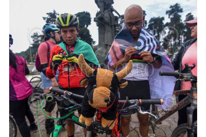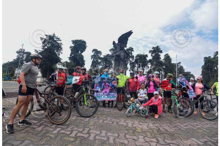TOLUCA, ESTADO DE MÉXICO, 01JUNIO2025.- Con un toro de peluche montado en una bicicleta, ciclistas de Toluca se unieron al festejo por el segundo lugar en Giro de Italia de Isaac del Toro, realizando una rodada en las principales calles de Toluca e invitaron a la población a utilizar más la bicicleta como un medio alternativo de movilidad. FOTO: CRISANTA ESPINOSA AGUILAR/CUARTOSCURO.COM