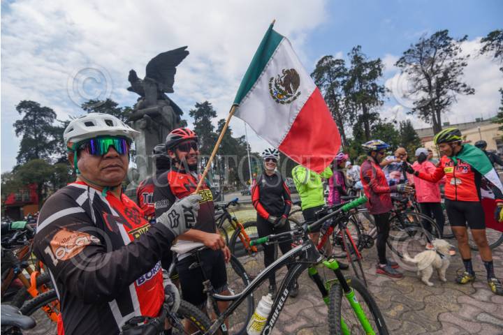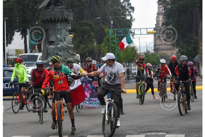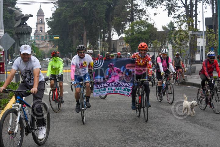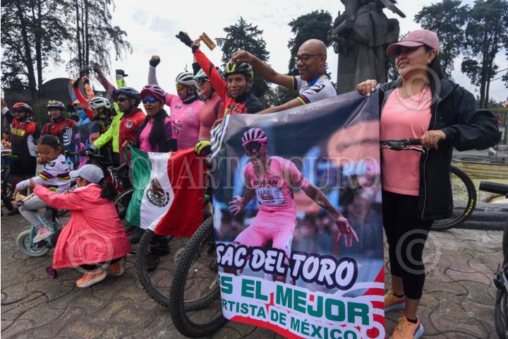 TOLUCA, ESTADO DE MÉXICO, 01JUNIO2025.- Ciclistas de Toluca se unieron al festejo por el segundo lugar en Giro de Italia de Isaac del Toro, realizando una rodada en las principales calles de Toluca e invitaron a la población a utilizar más la bicicleta como un medio alternativo de movilidad. FOTO: CRISANTA ESPINOSA AGUILAR/CUARTOSCURO.COM