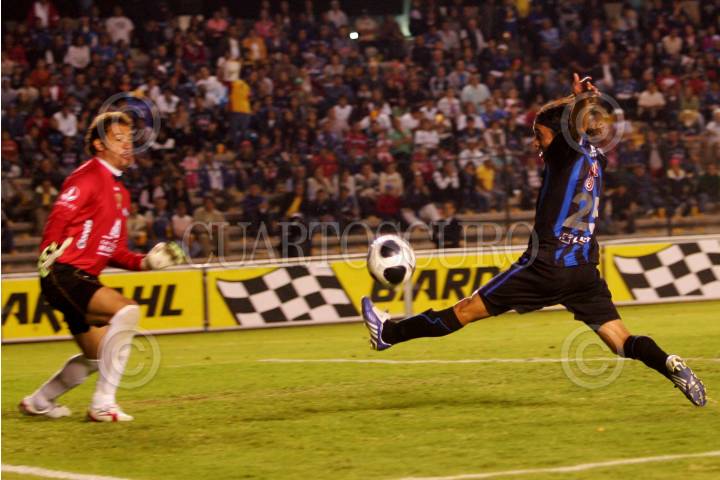 QUERÉTARO, QUERÉTARO, 29ABRIL2010.- Anotación de Julio Nava del Equipo Gallos Blancos de Querétaro contra su similar Atlas, en durante el torneo Apertura 2010 de la primera división, celebrado en el Estado La Corregidora. Gallos Blancos gano 2 goles por 1. FOTO: DEMIAN CHÁVEZ/CUARTOSCURO.COM