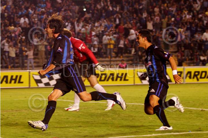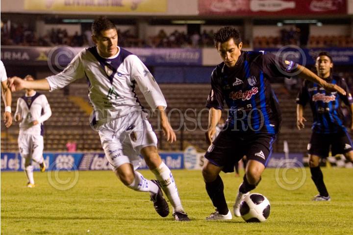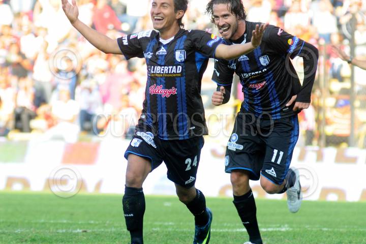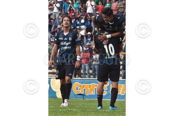 QUERÉTARO, QUERÉTARO, 29ABRIL2010.- Anotación de Sergio Blanco del Equipo Gallos Blancos de Querétaro contra su similar Atlas, en durante el torneo Apertura 2010 de la primera división, celebrado en el Estado La Corregidora. Gallos Blancos gano 2 goles por 1. FOTO: DEMIAN CHÁVEZ/CUARTOSCURO.COM