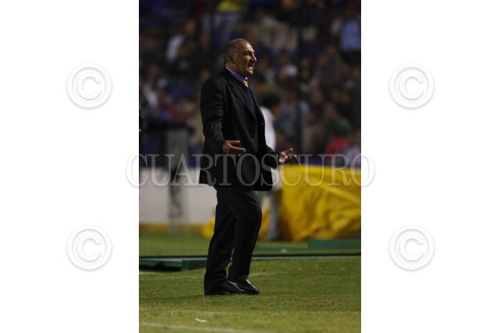 QUERÉTARO, QUERÉTARO 14NOVIEMBRE2009.- "El Zurdo" López, director técnico de San Luis, durante el partido de futbol Gallos Blancos de Querétaro VS Club San Luis, en la entrega 17 de la temporada apertura 2009. Celebrado en el estadio La Corregidora de Querétaro con un marcador final de 4-0 en favor de los locales. FOTO: DEMIAN CHÁVEZ/CUARTOSCURO.COM
