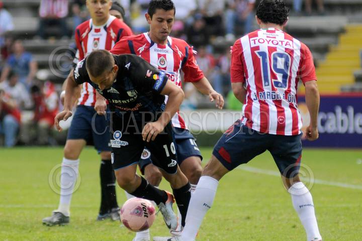 QUERETARO, QUERETARO, 10OCTUBRE2010.- Aspectos del partido de futbol entre Club Querétaro y Guadalajara, celebrado el día de ayer en el Estadio la Corregidora donde empataron a 2 goles. FOTO: DEMIANCHAVEZ/CUARTOSCURO.COM