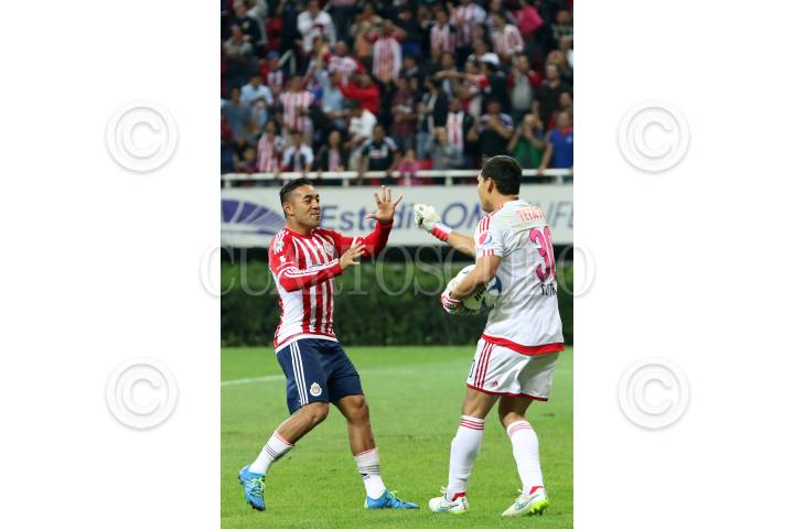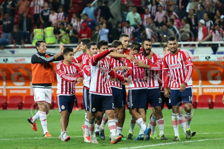 ZAPOPAN, JALISCO. 20OCTUBRE2015.- Jugadores de Chivas, celebran la victoria y su pase a semifinales, mismo que lograron en tanda de penales, esto en partido correspondiente a los cuartos de final del Torneo Apertura 2015 de la Copa MX, en donde se enfrentaron los equipos de las Chivas de Guadalajara frente a los Tiburones Rojos del Veracruz, en partido que se llevo a cabo en el Estadio Omnilife. FOTO: FERNANDO CARRANZA GARCIA/ CUARTOSCURO.COM