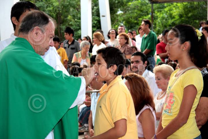 CANCÚN, QUINTANA ROO, 19OCTUBRE2008.- En la catedral se oficio una misa especial al celebrarse el "Domund" o Domingo Misionero, en donde el Obispo Pedro Pablo Elizondo bendijo todas las colectas recibidas para ayudar a los más necesitados. FOTO: MARCO POLO GUZMÁN HERNÁNDEZ/CUARTOSCURO.COM