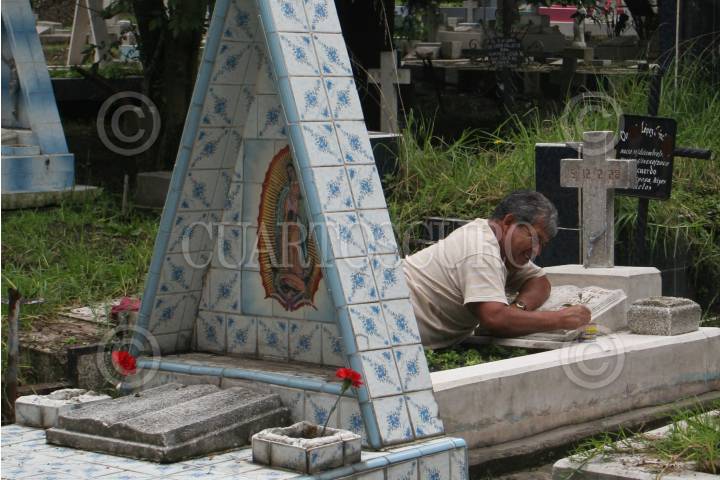 MÉXICO, D.F., 28OCTUBRE2009.- Familias acuden a los panteones para arreglar las tumbas de sus familiares y seres queridos a unos días de celebrarse el día de muertos. FOTO: ENRIQUE ORDÓÑEZ/CUARTOSCURO.COM