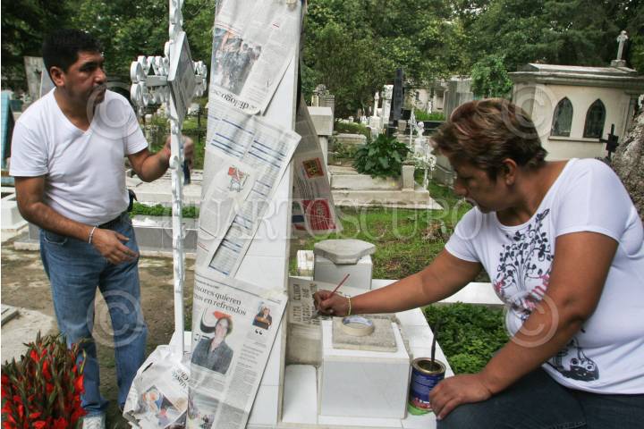 MÉXICO, D.F., 28OCTUBRE2009.- Familias acuden a los panteones para arreglar las tumbas de sus familiares y seres queridos a unos dias de celebrarse el dia de muertos. FOTO: ENRIQUE ORDÓÑEZ/CUARTOSCURO.COM