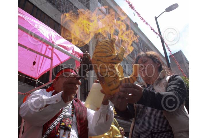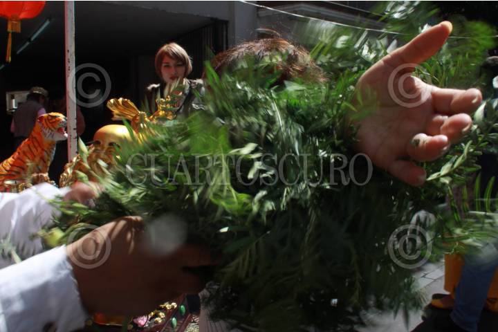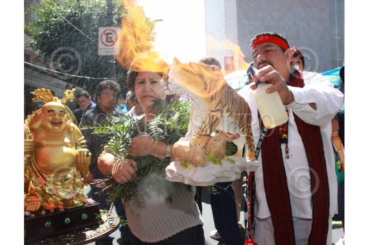 MÉXICO, D.F., 12FEBRERO2010.- Un hombre realiza una limpia a base de fuergo y ramos en el Barrio Chino a dos días de celebrarse el año nuevo Chino que en esta ocasión le corresponde al tigre, animal que augura un ciclo próspero. FOTO: SÁSHENKA GUTIÉRREZ/CUARTOSCURO.COM