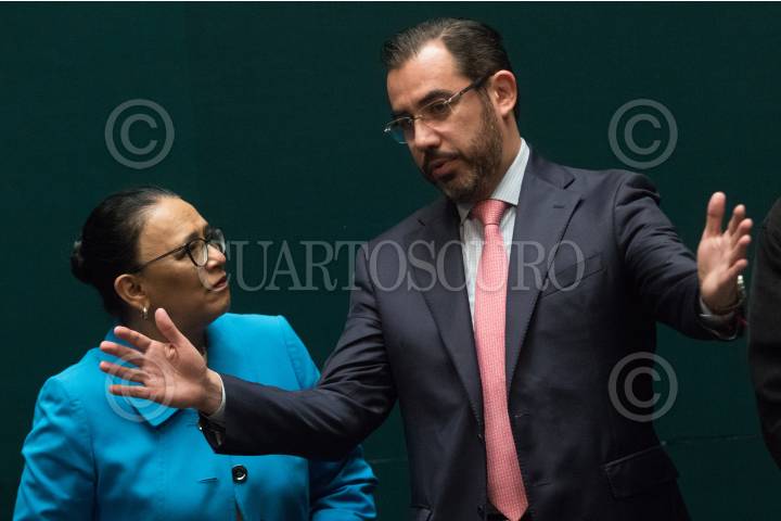 CIUDAD DE MÉXICO, 08JULIO2019.- Rosa Icela Rodríguez, secretaria de Gobierno, y Jesus Orta, secretario de Seguridad Ciudadana, durante el lanzamiento de la "Estrategia Multisectorial para promover el Bloqueo de los Celulares Robados y Extraviados", la cual consiste en que los ciudadanos a través del número IMEI de sus aparatos podrán bloquearlo para que nadie lo pueda utilizar, ni revender, esto lo podrán hacer con una llamada a Locatel o por medio de varios portales del gobierno capitalino que brindarán este servicio. FOTO: MOISÉS PABLO /CUARTOSCURO.COM