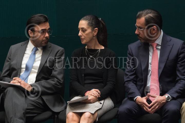 CIUDAD DE MÉXICO, 08JULIO2019.- Gabriel Contreras Saldívar, presidente del Instituto Federal de Telecomunicaciones (IFT); Claudia sheinbaum, Jefa de Gobierno, y Jesus Orta, secretario de Seguridad Ciudadana, durante el lanzamiento de la "Estrategia Multisectorial para promover el Bloqueo de los Celulares Robados y Extraviados", la cual consiste en que los ciudadanos a través del número IMEI de sus aparatos podrán bloquearlo para que nadie lo pueda utilizar, ni revender, esto lo podrán hacer con una llamada a Locatel o por medio de varios portales del gobierno capitalino que brindarán este servicio. FOTO: MOISÉS PABLO /CUARTOSCURO.COM