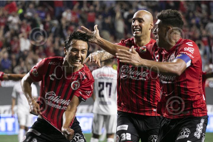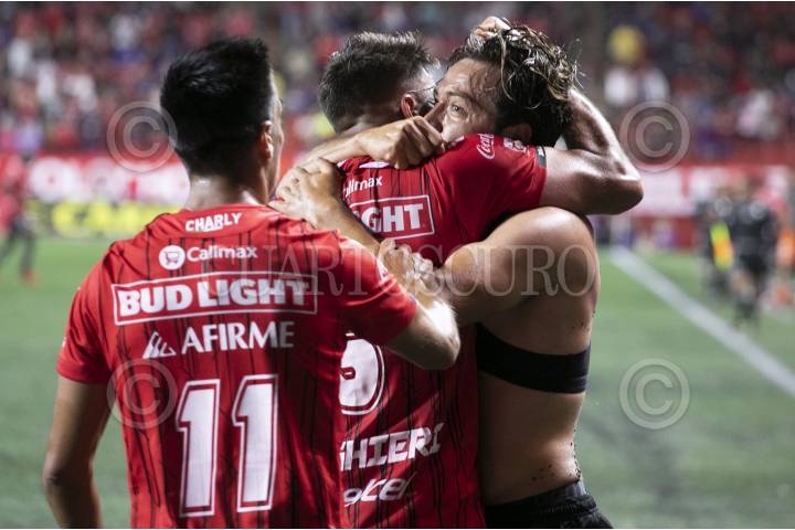 TIJUANA, BAJA CALIFORNIA, 28AGOSTO2019.- Manuel Lajub festeja el gol anotado por su equipo durante el partido entre Xoloitzcuintles de Tijuana contra Cruz Azul, en partido realizado en el estadio Caliente, como parte de la Jornada 07 del Torneo de Apertura 2019 de la Liga MX. Marcador final: Xolos 3, Cementeros 2. FOTO: OMAR MARTÍNEZ /CUARTOSCURO.COM