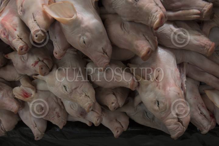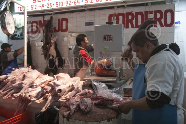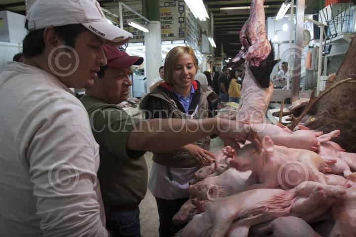 En el mercado de la Merced se ofrece espinazo, bisteck y lomo de cerdo para preparar la cena de año nuevo.