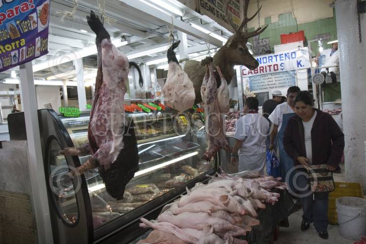 MÉXICO, D.F., 30DICIEMBRE2013.- Cientos de personas visitan el mercado de carnes San Juan en el cruce de las avenidas Zaragoza y Canal de San Juan para comprar lo necesario para los platillos que realizarán en la cena de fin de año. FOTO: DIEGO SIMÓN SÁNCHEZ /CUARTOSCURO.COM