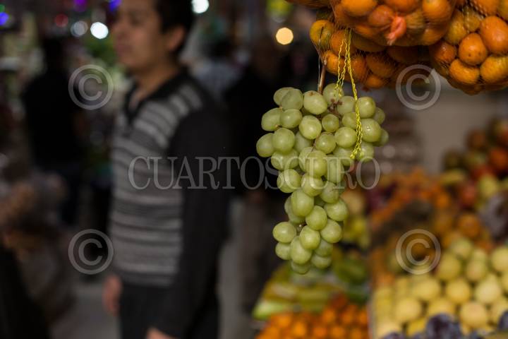 CIUDAD DE MÉXICO, 31DICIEMBRE2017.- Venta de productos para la cena de fin de año en mercado de San Juan. El kilo de uva sin semilla se puede encontrar entre 60 y 90 pesos. FOTO: ADOLFO VLADIMIR /CUARTOSCURO.COM