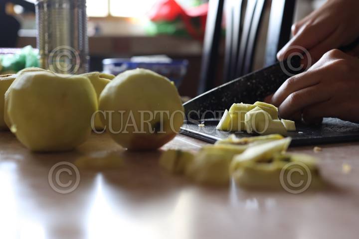 CIUDAD DE MÉXICO, 24DICIEMBRE2023.- Aspectos de la preparación de una cena navideña. Manzanas picadas para hacer ensalada de manzana. FOTO: EDGAR NEGRETE LIRA/CUARTOSCURO.COM
