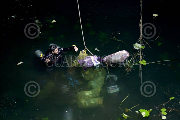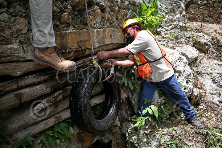 Un grupode buzos, encabezado por el arqueólogo Sergio Grosjean, limpiaron el cenote de la comunidad X-caltzin, ubicado en el poblado de Chemax.