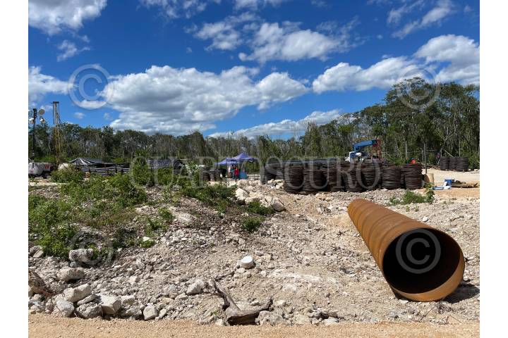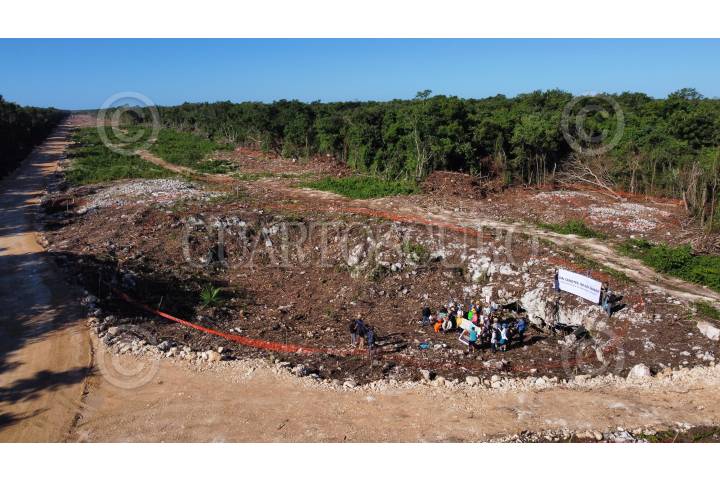 A lo largo de la obra del tramo 5 del Tren Maya que recorrerá Playa del Carmen, Quintana Roo, se observan cavernas y cenotes.
