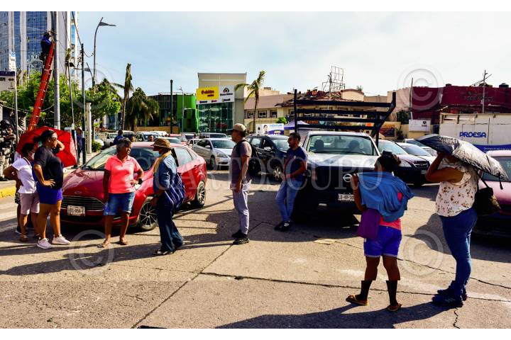 ACAPULCO, GUERRERO. 28NOVIEMBRE2023.- Vecinos de diferentes colonias de Acapulco, realizan un bloqueo en la avenida Costera Miguel Alemán en la glorieta de La Diana, los vecinos afectados por el huracán Otis están exigiendo a las autoridades que sean censados para recibir apoyos de enseres domésticos y apoyos para limpieza y recontratación de sus hogares, hasta el momento el bloqueo a durado más de 6 horas, sin qué aún reciban una respuesta por parte de las autoridades. FOTO: CARLOS CARBAJAL/CUARTOSCURO.COM